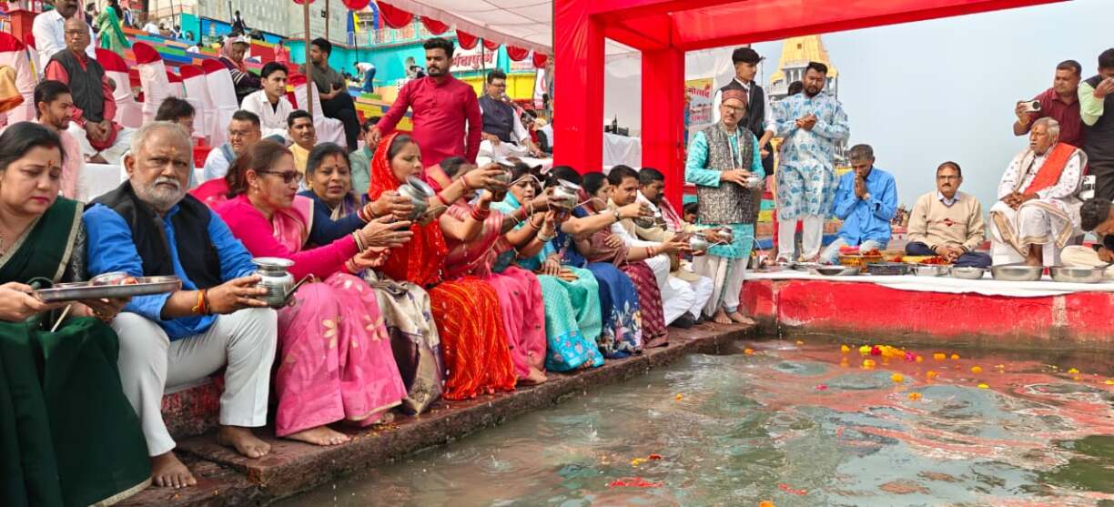 नर्मदापुरम 24,जनवरी,2025(हिन्द संतरी) मां नर्मदा प्राकट्योत्सव एवं नगर गौरव दिवस 2026 का शुभारंभ श्रद्धा, आस्था और भक्ति भाव के साथ मंगलाचरण से हुआ। कार्यक्रम की शुरुआत गणेश वंदना के साथ की गई, जिसके पश्चात मां नर्मदा का विधिवत पूजन एवं अभिषेक संपन्न हुआ। इस अवसर पर भजन-कीर्तन भी आयोजित किए गए। शनिवार 24 जनवरी को आयोजित कार्यक्रमों की श्रृंखला में ‘इंद्रधनुष’ कार्यक्रम के अंतर्गत रंगोली चित्रकला एवं मेहंदी प्रतियोगिताएं आयोजित की गईं, जिनमें प्रतिभागियों ने उत्साहपूर्वक भाग लिया। तत्पश्चात मां नर्मदा जी की आरती शाम 7 बजे नित्य आरती समिति द्वारा की गई।